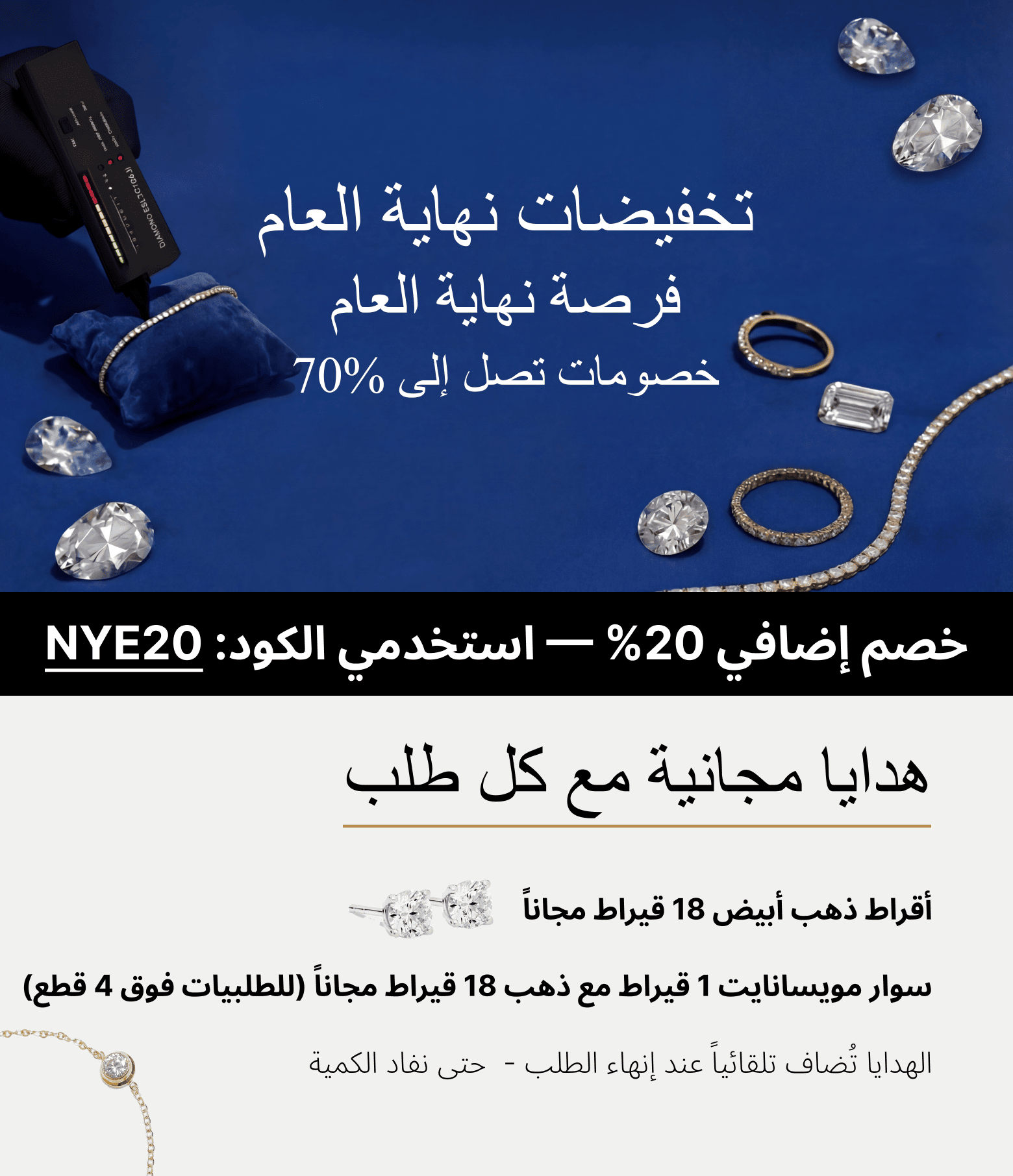 قلادة ريم من المويسانتي - ذهب أبيض - لون D - VVS1